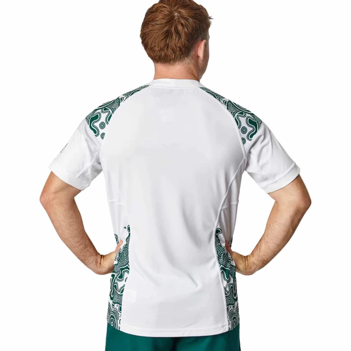 Prepare to turn heads and show off your unwavering support for the Wallabies with the Asics Australia Mens Away Rugby World Cup Jersey 2023 in a sleek and stylish white design. This is not just your average jersey; it's a symbol of pride and passion for Australian rugby. Made with meticulous attention to detail, this jersey is a masterpiece of comfort and performance, ensuring you're ready to dominate the field.