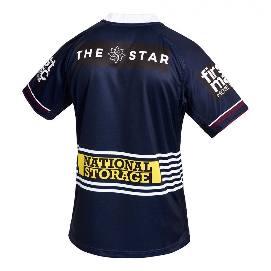 A reimagining of the 2010 tribute jersey to Cyril Connell, the Brisbane Broncos Rugby Mens Away Jersey 2026 features a sleek navy base and bold white stripes across the body. The refined vee neckline and mesh panelling add comfort and breathability without losing its traditional edge. Made from 100% recycled polyester, it’s lightweight, durable and ready for every match-day moment. Embroidered logos and fine detailing complete a look that proudly carries Broncos history into 2026.