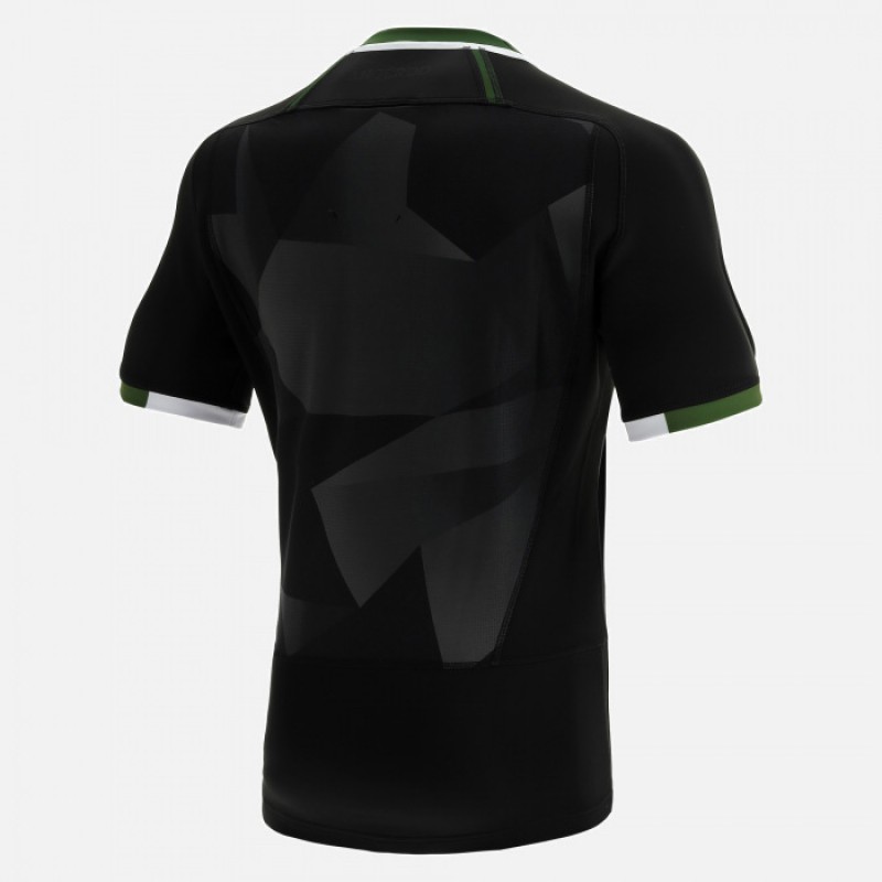 Wales Mens Away Rugby Jersey 2023 - black relaxed fit shirt with embossed cross over the torso, yell..